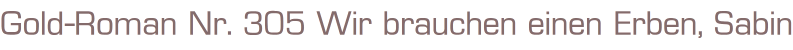 Gold-Roman Nr. 305Wir brauchen einen Erben, SabineSchicksalsromanAutor: Cora TravenVerlag: ZauberkreisRomanheft 62 SeitenFormat: 15,5 x 22,5 cmZustand: sehr gut