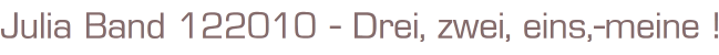 JULIA - Traumhafte Liebe Band 122010 Titel: Drei, zwei, eins - meine! Autor: Lucy King Cora Verlag Taschenbuch, Softcover, 140 Seiten Format: 12,5 cm x 18 cmGewicht: 98 gZustand: gut