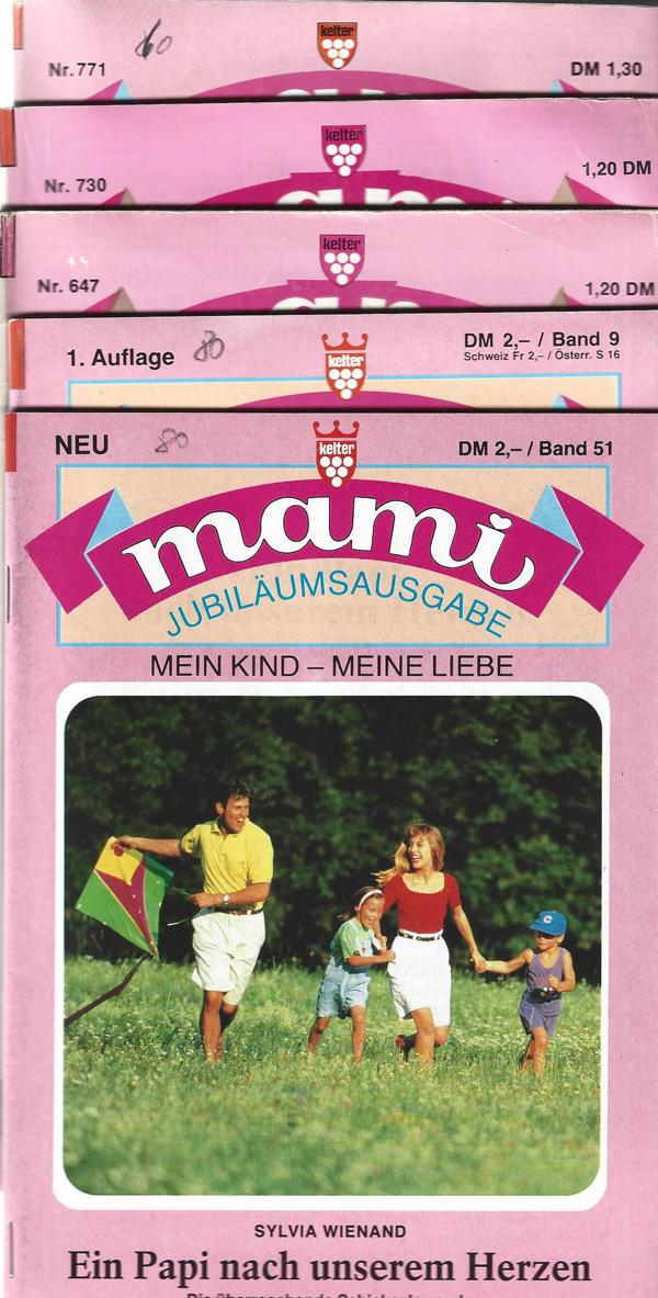 Mami 5 Stück Romanhefte Band 51 - Ein Papi nach unserem Herzen Band 9 - Vati ist der Beste Nr. 647 - Kinderheim Kükenhof Nr. 730 - Bei mir ist deine Heimat Nr. 771 - Melanie, das Waisenkind Verlag: Martin Kelter Verlag5 Stück Romanheft á 62 SeitenFormat: 15,5 x 22,5 cmZustand: gut