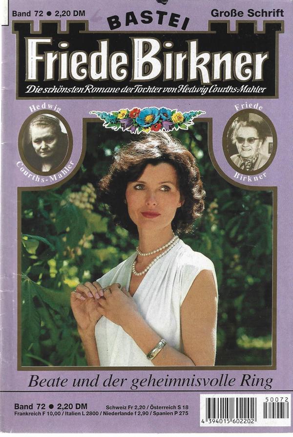 Friede Birkner Nr. 72Die schönsten Romane der Tochter vonHedwig Courths MahlerTitel: Beate und der geheimnisvolle Ring.Verlag: Bastei LübbeRomanhefte 65 SeitenFormat: 15,5 x 22,5 cmZustand: gebraucht, gutRomanhefte - Liebesromane