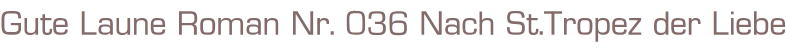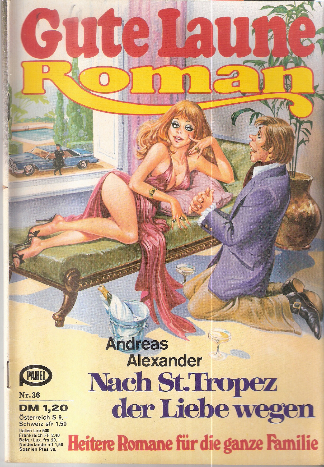 Gute Laune Roman Nr. 36Titel: Nach St. Tropez der Liebe wegenAutor: Andreas AlexanderVerlag: Erich Pabel Verlag RastattRomanheft 66 SeitenFormat: 15 x 22 cmGewicht: 65 gZustand: sehr gut erhaltenes Exemplar