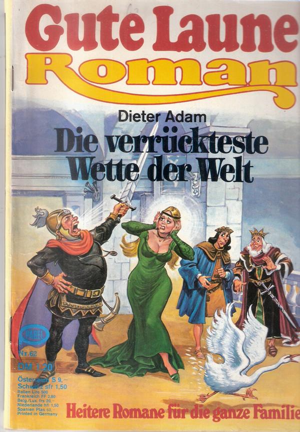 Gute Laune Roman Nr. 62Heitere Romane für die ganze FamilieTitel: Die verrückteste Wette der WeltAutor: Dieter AdamVerlag: Erich Pabel Verlag, RastattRomanheft 64 SeitenFormat: 15,5 cm x 22,5 cmGewicht: 71 gZustand: gut