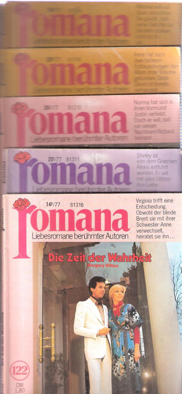 Romana Weite Welt & Grosse Liebe Romana Hefte 5 Stück Romana Nr. 122, 132, 133, 140, 146 von 1977Cora Verlag 5 Heft, Softcover, 127 Seiten Format: 13 x 18 x 3 cm Zustand: gebraucht, gut