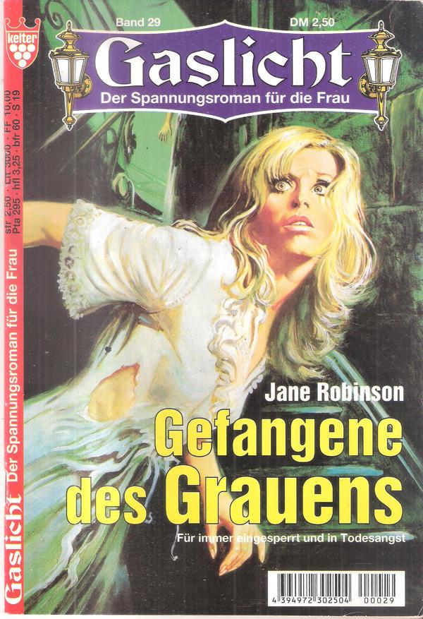 Der Spannungsroman für FrauenGaslicht Nr. 29Titel: Gefangene des GrauensRoman um Liebe und GeheimnisAutor: Jane RobinsonPabel Verlag Romanheft, 64 SeitenFormat: 15,5 cm x 22,5 cmZustand: sehr gut