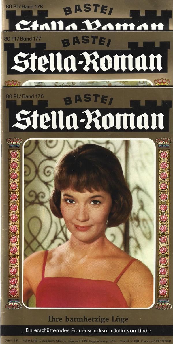 Stella Roman (3 Romane)Nr. 176 Ihre barmherzige Lüge von Lulia von Linde.Nr. 177 Tränen in der Schloßkapelle von Eva Burghardt.Nr. 178 stärker als dein falsches Spiel vom Wera Orloff.Bastei Verlag3 Romanhefte á 64 SeitenFormat: 15,5 cm x 22,5 cm x 10 StückZustand: gut