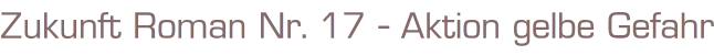Titel: Aktion gelbe GefahrAutor: James SpencerSerie: Zukunft Roman Nr. 17Verlag: Neuzeit Verlag, Pilsting-GanackerFormat: 15 x 22 cmGewicht: 67 gZustand: gut, mit leichten Gebrauchsspuren