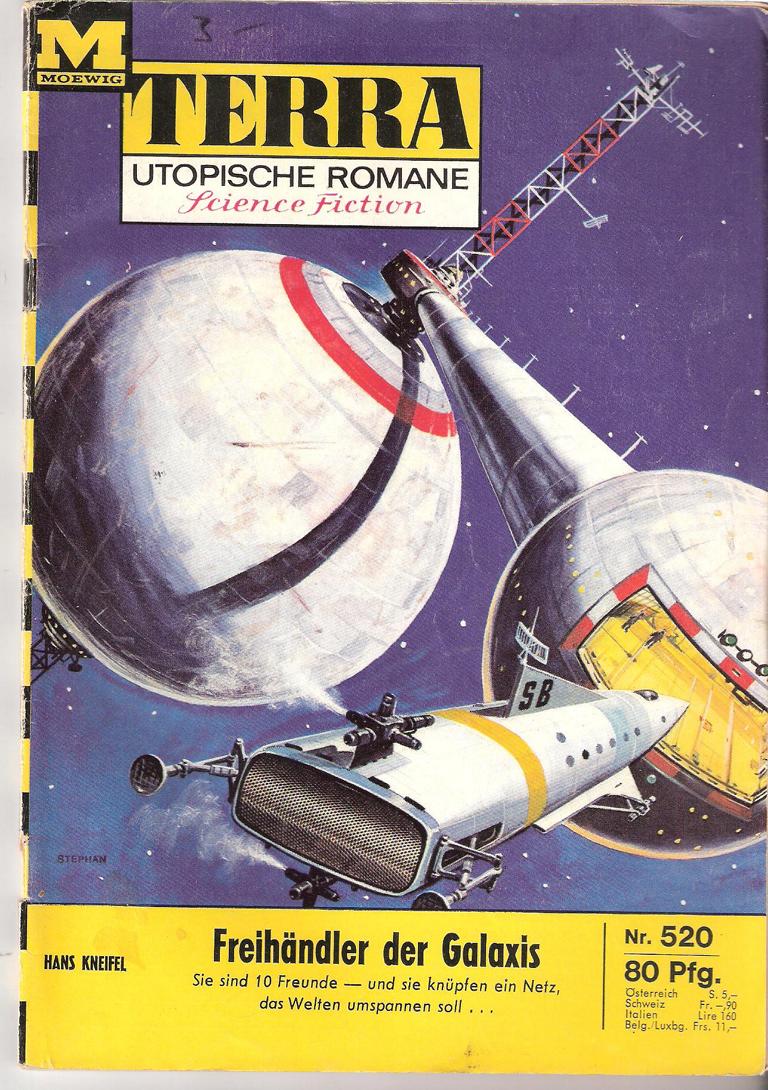 Utopische Romane - Science Fiction - SFTitel : Freihändler der GalaxisAutor: Hans KneifelVerlag: MoewigRomanheft, 62 SeitenFormat: 15,5 cm x 22,5 cm Gewicht: 75 gZustand: mit Lager- und Gebrauchsspuren, Papier teilweise fleckig