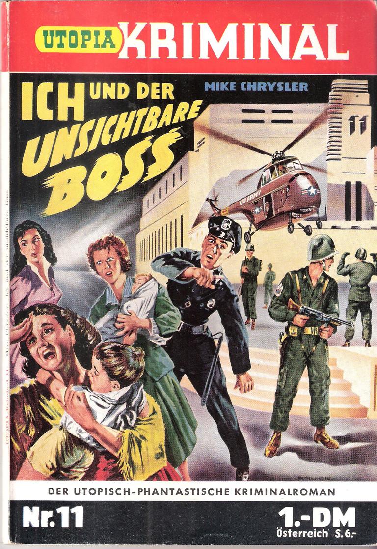 Utopia Kriminal Nr. 11Titel: Ich und der unsichtbare BossAutor: Mike ChryslerVerlag: Erich PabelRomanheft 93 SeitenFormat: 15 cm x 22,5 cmGewicht: 105 gZustand: mit leichten Gebrauchsspuren,Papier leicht nachgedunkelt,sonst gut erhaltenes ExemplarRomanhefte - Utopia-Krimi