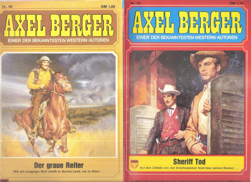 Axel Berger Nr. 50 + 65Nr. 50) Der graue ReuterNr. 65) Sheriff TodKelter Verlag2 Western-Romanhefte á 65 SeitenFormat: 15,5 x 22,5 cmZustand: gut