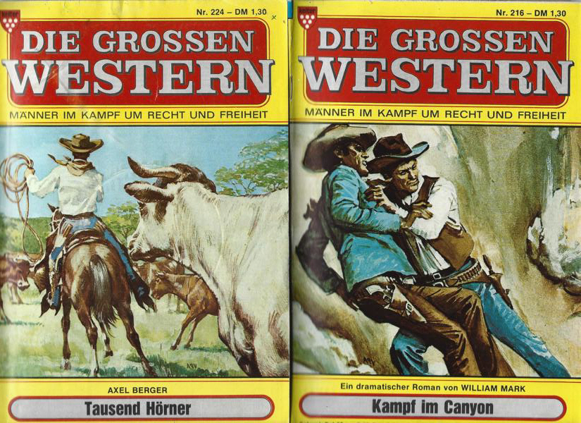 Die großen Western Nr. 216 Kampf im Canyon.Nr. 224 Tausend Hörner.Kelter Verlag2 Romanhefte á 62 SeitenFormat: 15,5 x 22,5 cmZustand: gut