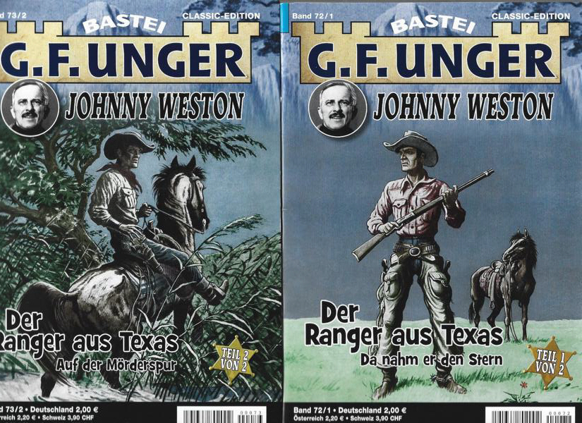 Titel: Der Ranger aus Texas.Teil 1 von 2 Da nahm er den Stern.Teil 2 von 2 Auf der Mörderspur.Autor: Jonny WestonVerlag: BasteiZwei Romanhefte á 63 SeitenFormat: 15,5 x 22,5 cmZustand: sehr gut
