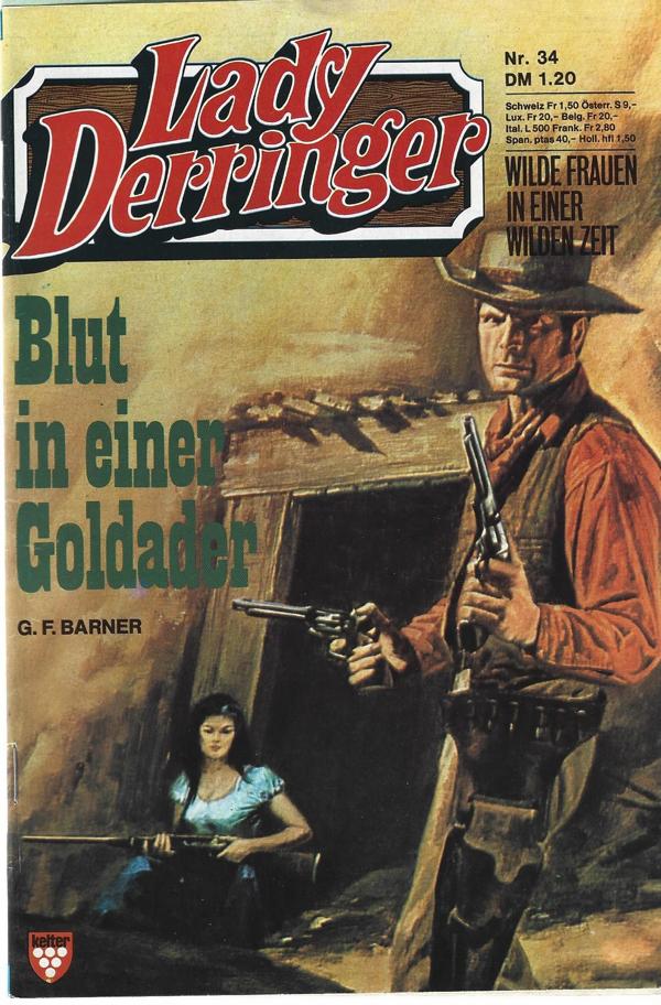 Lady Derringer Nr. 034Blut in einer Goldader.von: G. F. BarnerVerlag: Martin Kelter Verlag, HamburgDeutscher Hefterstdruck.Romanheft 65 SeitenFormat: 15,5 x 22 cmZustand: sehr gut