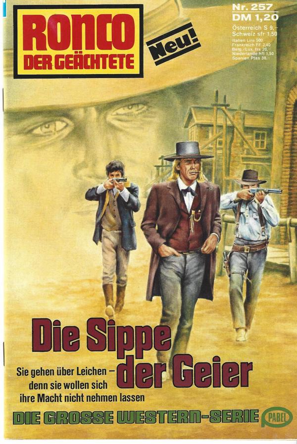 Ronco - Der Geächtete Nr. 257die Sippe der Geier.Autor: Earl WarrenVerlag: Erich Pabel Rastatt 1977Romanhefte 64 SeitenFormat: 15,5 x 22,5 cmZustand: sehr gut