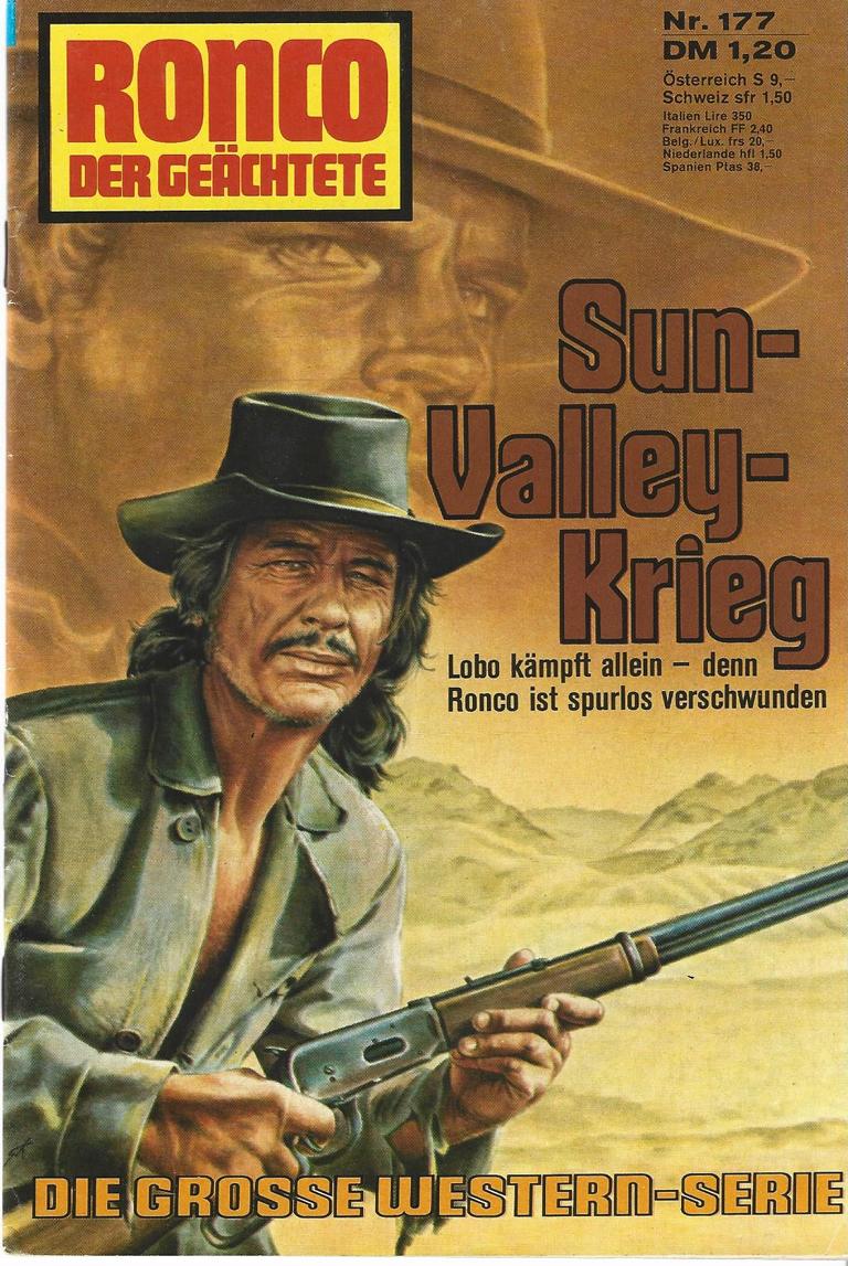 Ronco - Der Geächtete Nr. 177Sun-Valley-Krieg.Autor: Everett JonesVerlag: Erich Pabel Rastatt 1975Romanhefte 64 SeitenFormat: 15,5 x 22,5 cmZustand: sehr gut