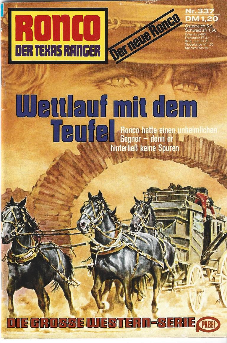 Ronco - Der Texas Ranger Nr. 337Wettlauf mit dem Teufel.Autor: Jim ElliotVerlag: Erich Pabel Rastatt 1978Romanhefte 64 SeitenFormat: 15,5 x 22,5 cmZustand: sehr gut
