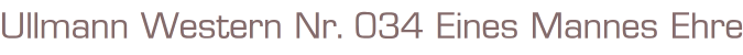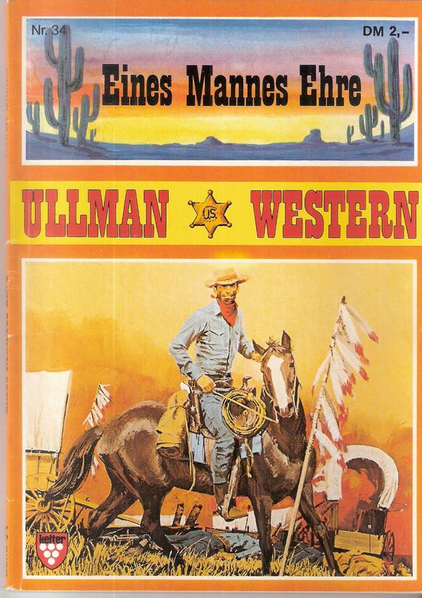Ullmann WEstern Nr. 34 Titel: Eines Mannes EhreAutor: Robert UllmannVerlag: Martin Keller Verlag, HamburgRomanheft 128 Seiten, große SchriftFormat: 15,5 x 22,5 cmGewicht: 95 gZustand: leichte Gebrauchsspuren