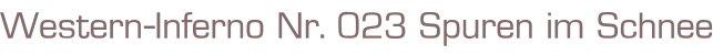 Western-Inferno Nr. 023Spuren im Schnee.von: Bill RobinsonVerlag: Wolfgang Marken Verlag, Köln 1976Romanheft 66 SeitenFormat: 15,5 x 22 cmZustand: gut
