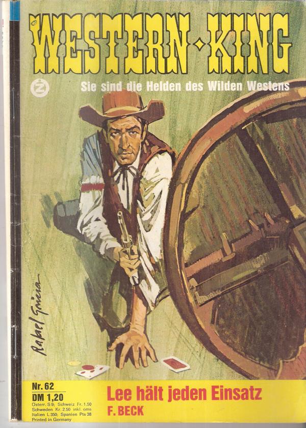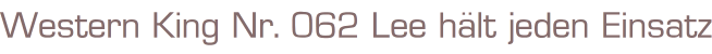 Western King Nr. 062 Titel: Lee hält jeden Einsatz Autor: F. BeckVerlag: Bastei Verlag Bergisch GladbachRomanheft 62 SeitenFormat: 15,5 x 22,5 cmGewicht: 74 gZustand: leichte Gebrauchsspuren
